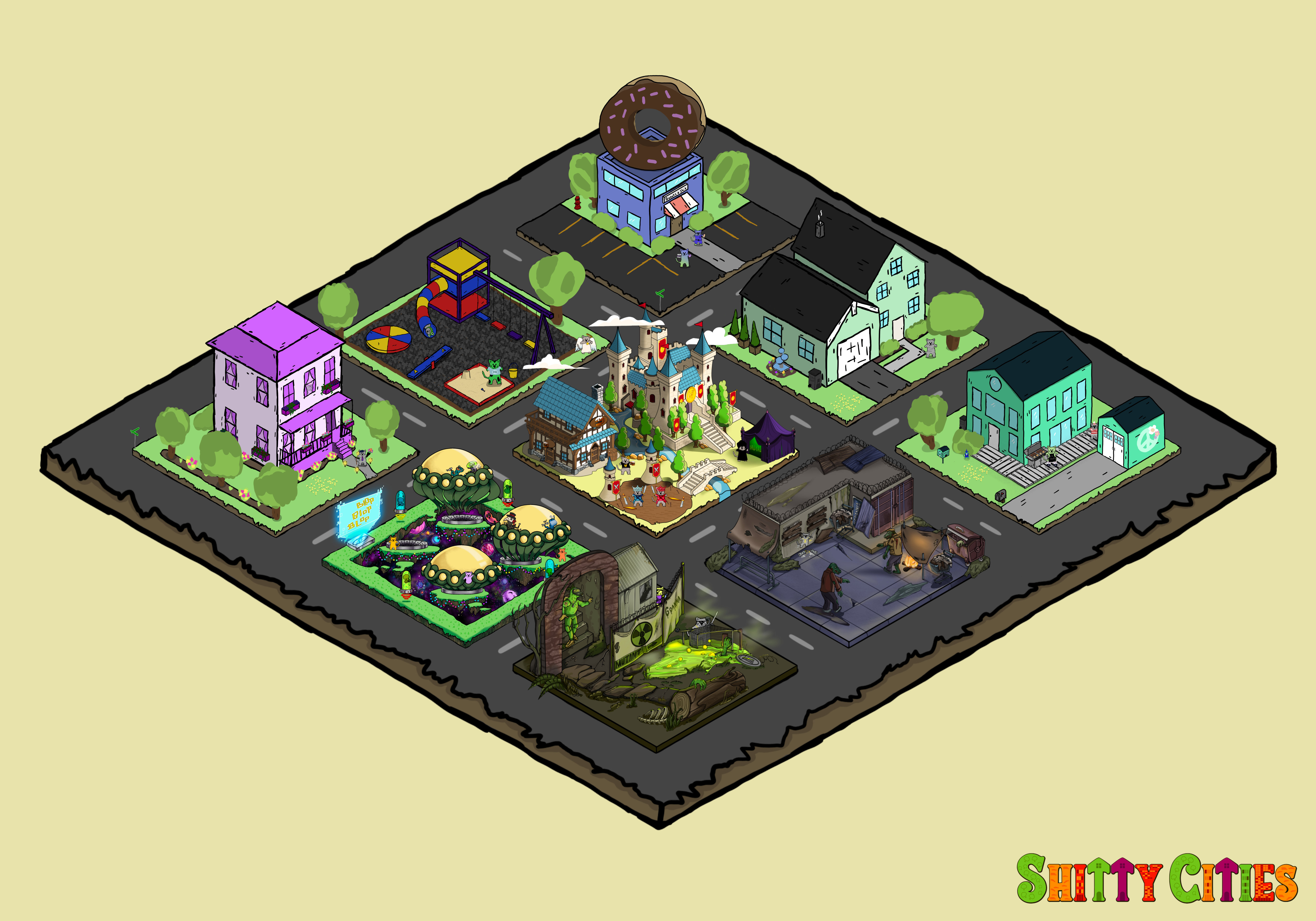 Shitty Cities is the first and shittiest city building NFT Collection on the Algorand blockchain.