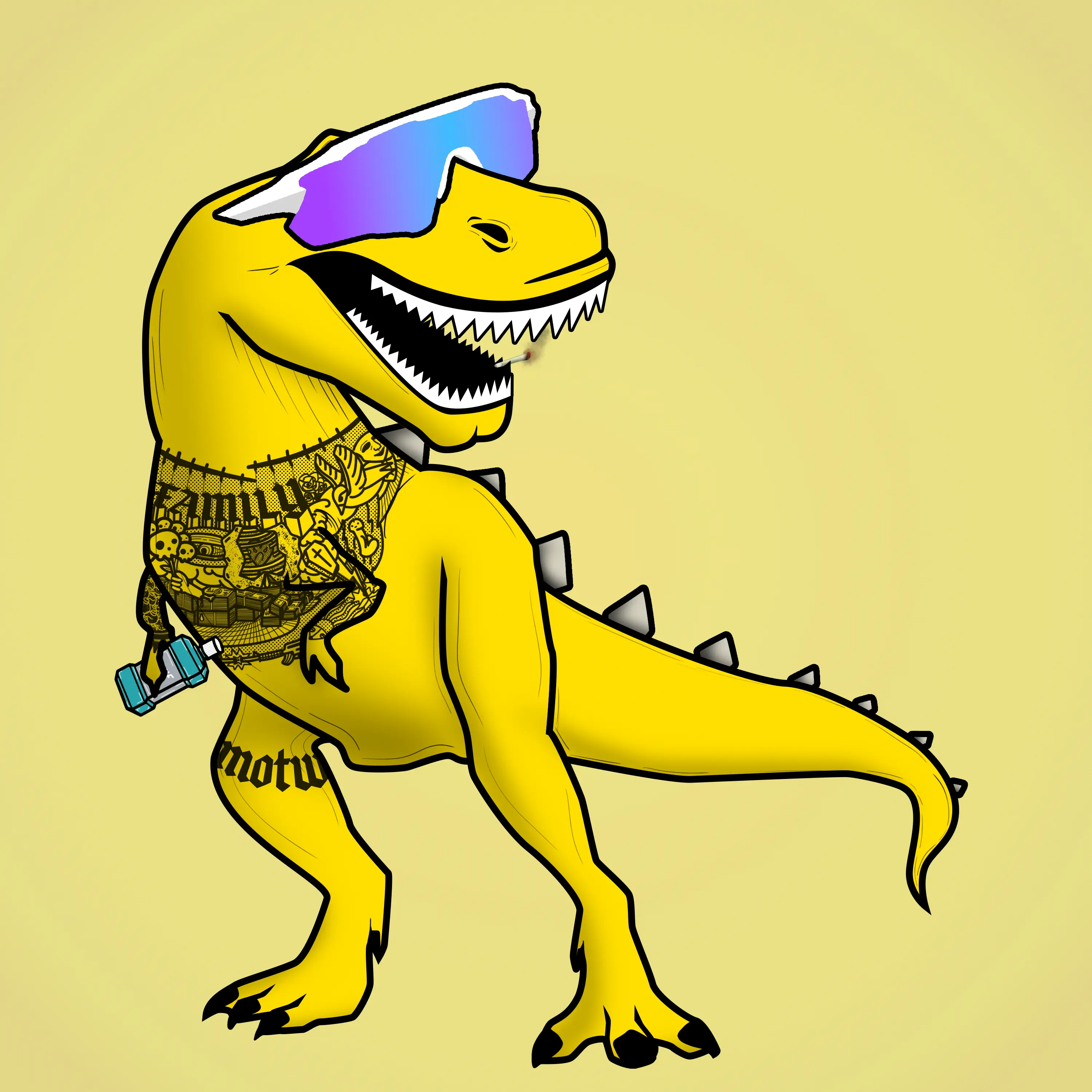The reckoning continues… The Algorand blockchain was mocked by Motw’s terrible art skills… Despite his attempts at embracing his flawed art, he knew he had to partner with an artist named Teasy. This is Motw’s attempt at reigniting the havoc that Algosaurs bring to the blockchain. The art you now own is the current utility of this project. This is subject to change based on the demand of the NFTs.